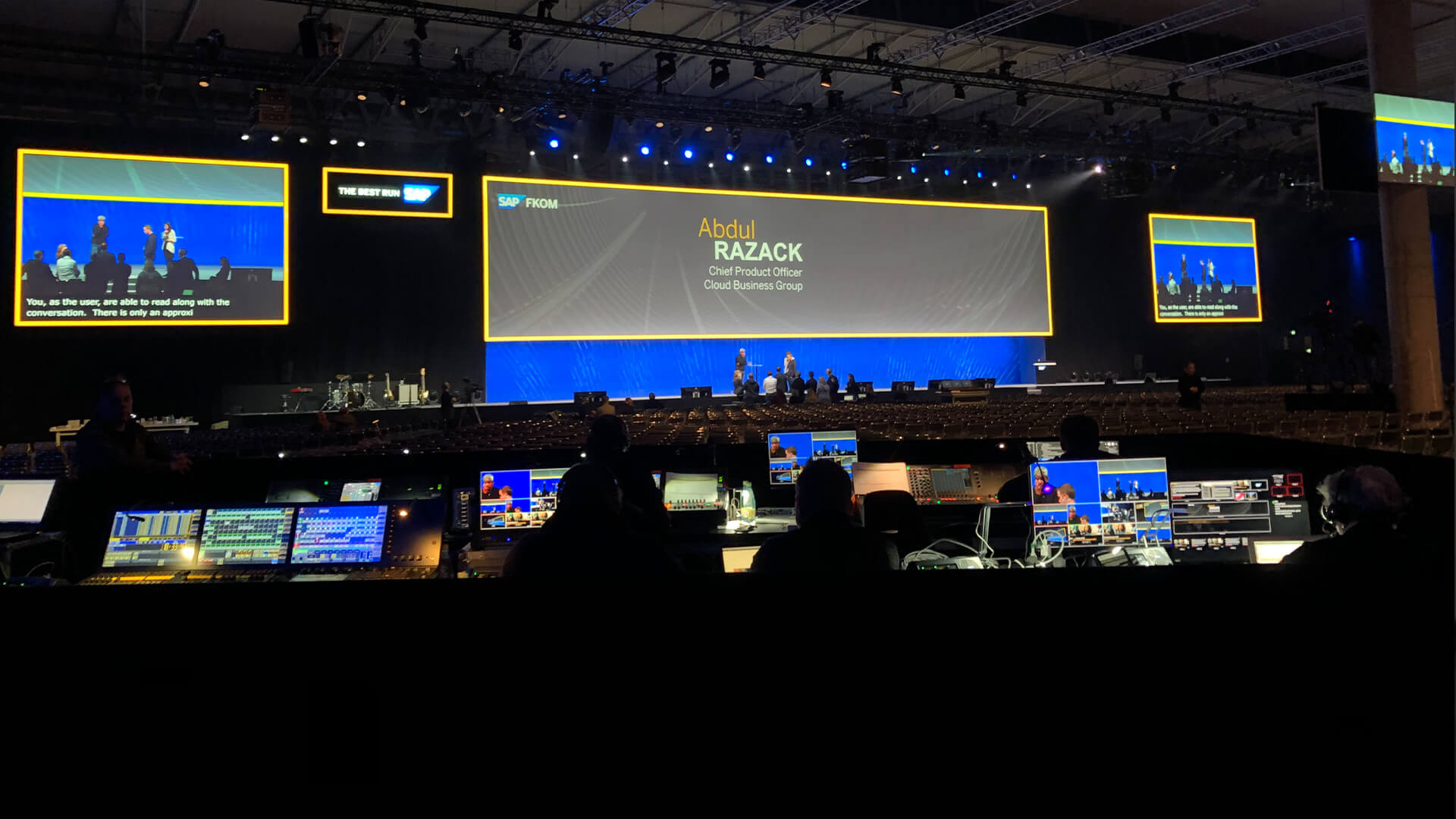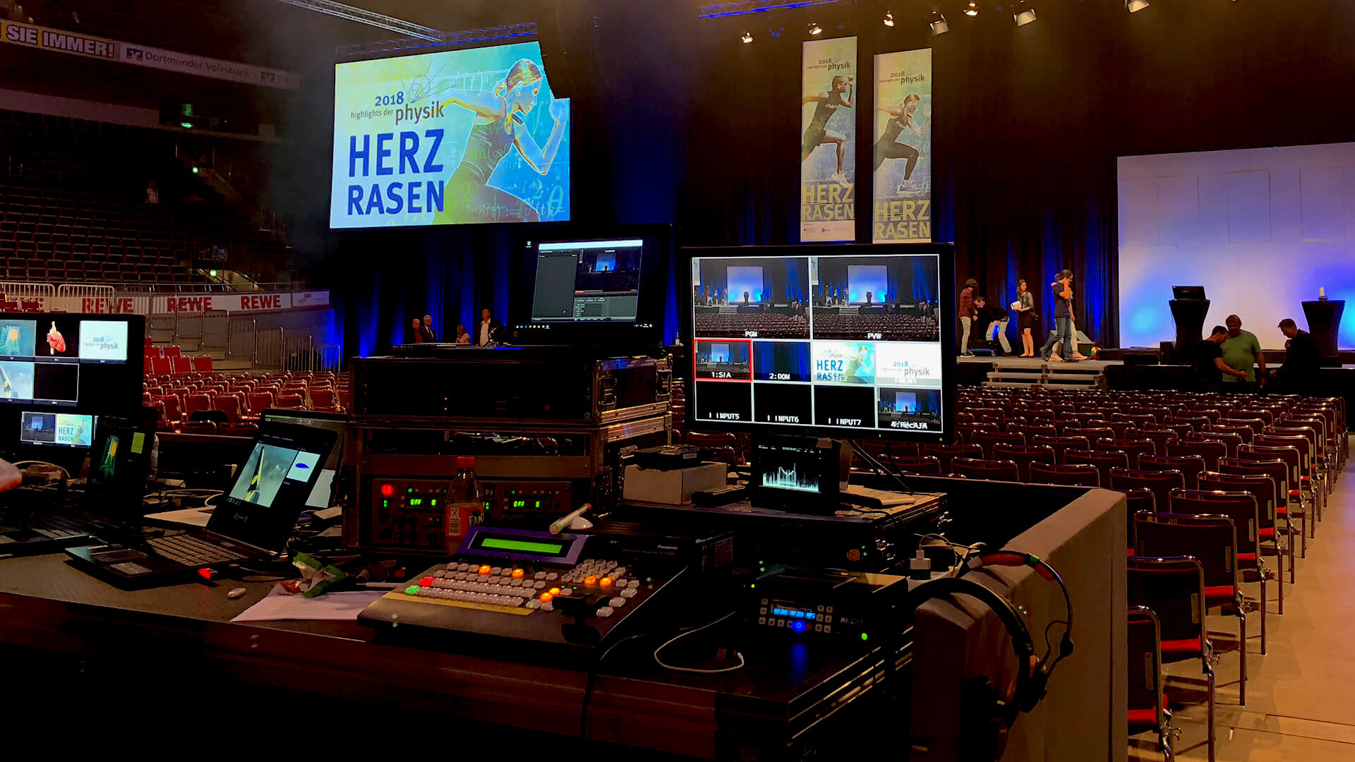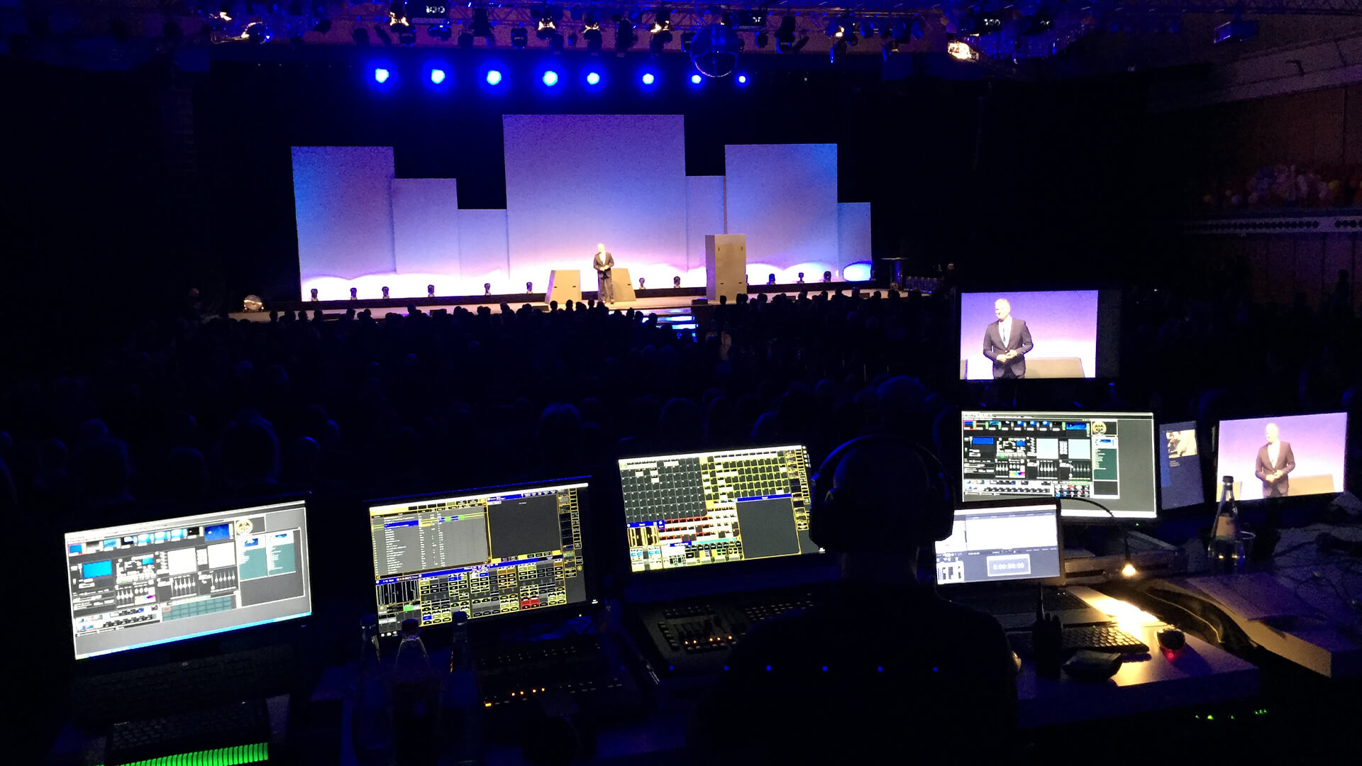 Gesamte Technik. Bühne, Rigging. Medienserver, Projektoren, Kamera sowie Licht- und Beschallungtechnik.