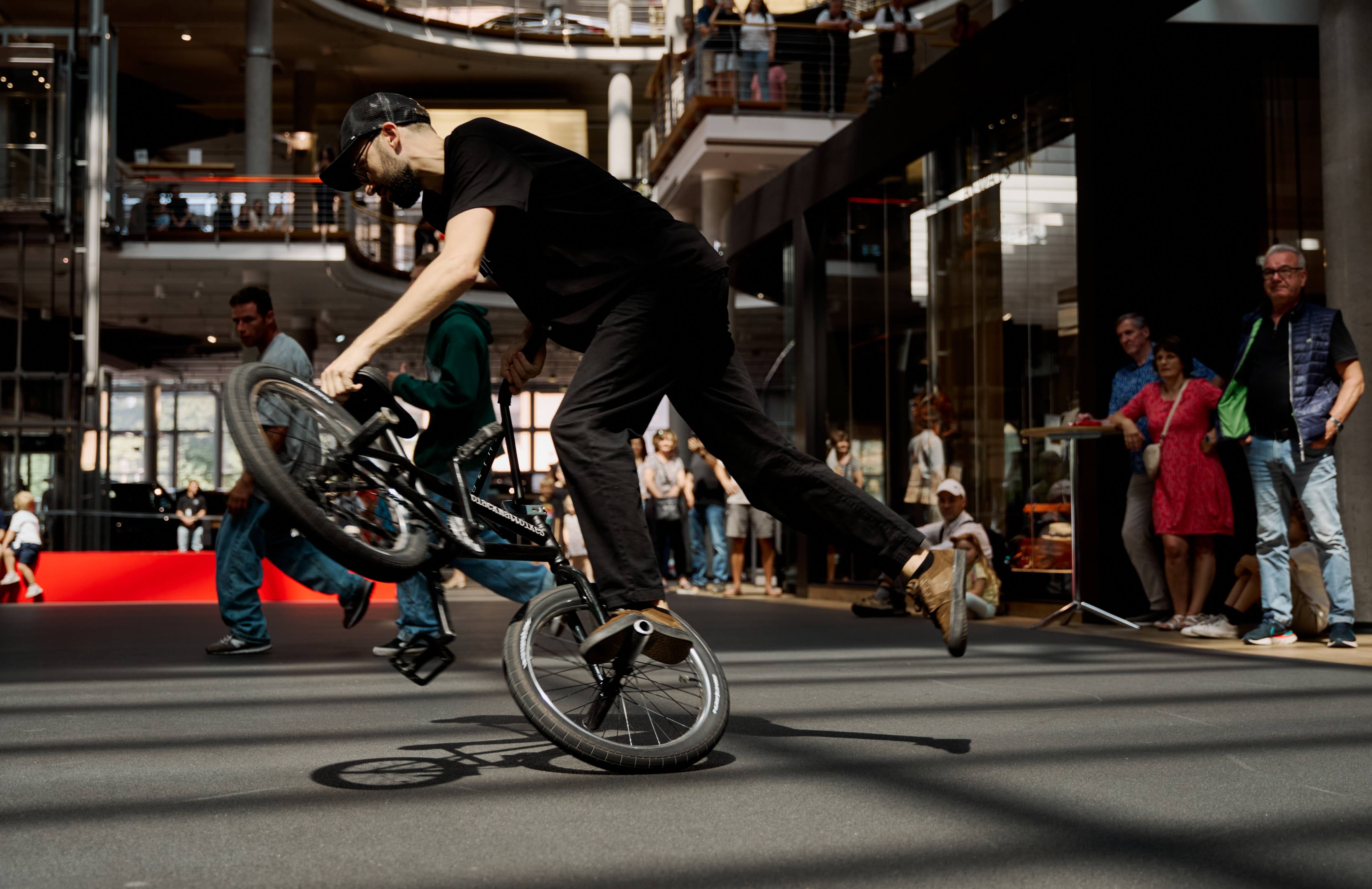 Wer „BMX Show buchen“ sucht, meint in der Regel ein spektakuläres, aber einfach integrierbares Action-Highlight. Genau dafür ist unsere BMX Freestyle Show gemacht: BMX Flatland (Tricks auf flacher Fläche) sorgt für Wow-Effekte – ohne Rampen, ohne großen Aufbau, dafür mit maximaler Flexibilität und Nähe zum Publikum. Die BMX Show eignet sich für Firmenfeiern, Messeauftritte, Produkt-Launches, Roadshows und urbane Markenaktivierungen. Besonders stark wirkt sie als: