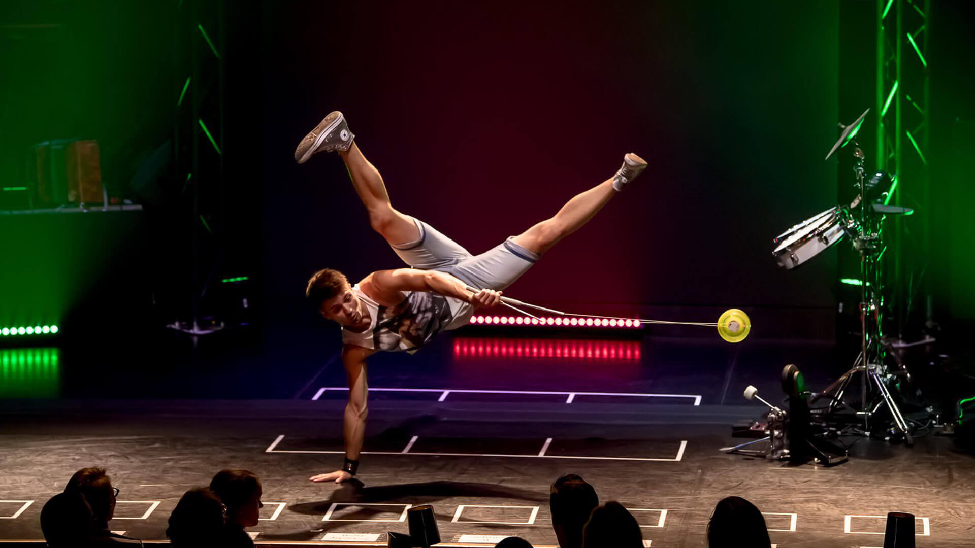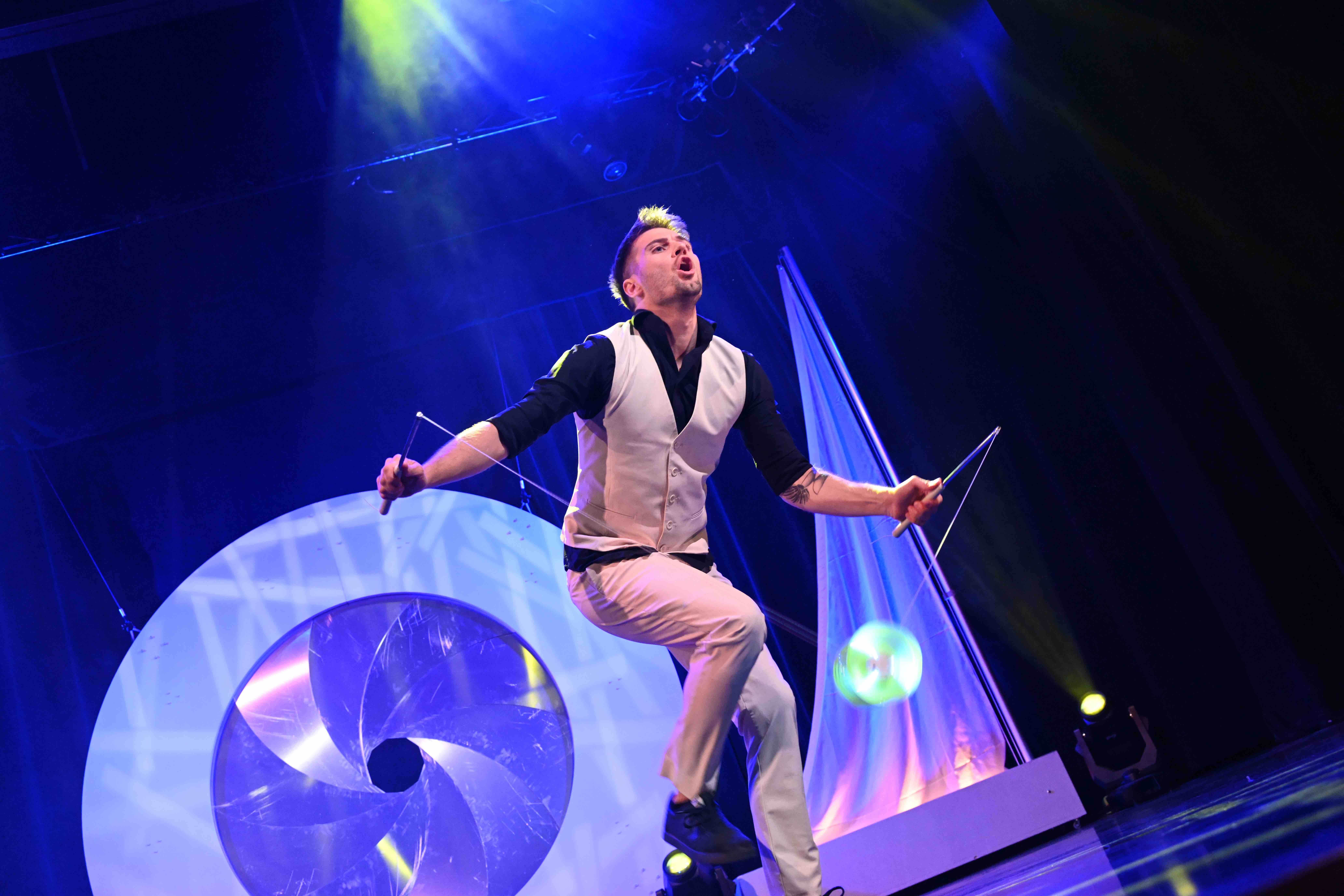 Eine Diabolo Show ist eine Live-Performance, bei der Artisten mit gekonnten Rotationstricks, rhythmischem Spiel und kreativen Choreografien ein Publikum in den Bann ziehen. Ob Solo-Act oder LED-Showact – Diabolo Acts erzeugen visuelle Spannung, Dynamik und unmittelbare Aufmerksamkeit auf jeder Bühne.