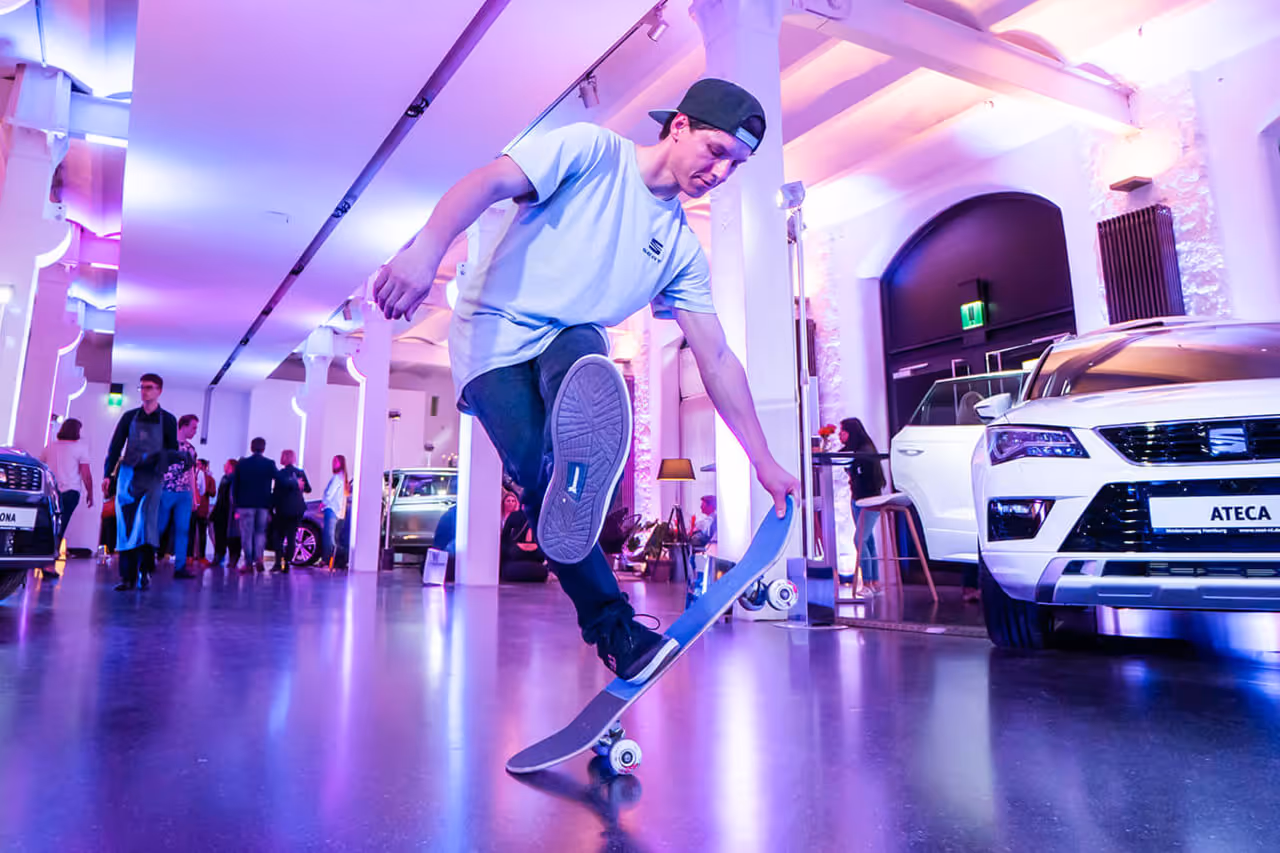 Dank des modularen Aufbaus lassen sich Freestyle Acts flexibel zusammenstellen – von einer einzelnen Disziplin bis zur großen Crossover-Crew. Fußball-Freestyle, BMX, Breakdance, Skateboard oder Frisbee verschmelzen zu individuellen Showprogrammen, die exakt auf Bühne, Zielgruppe und Markenbotschaft abgestimmt sind. Logos, Claims, Produkte und CI-Farben können dramaturgisch integriert werden und sorgen für hohe Wiedererkennbarkeit und Social-Media-Reichweite.