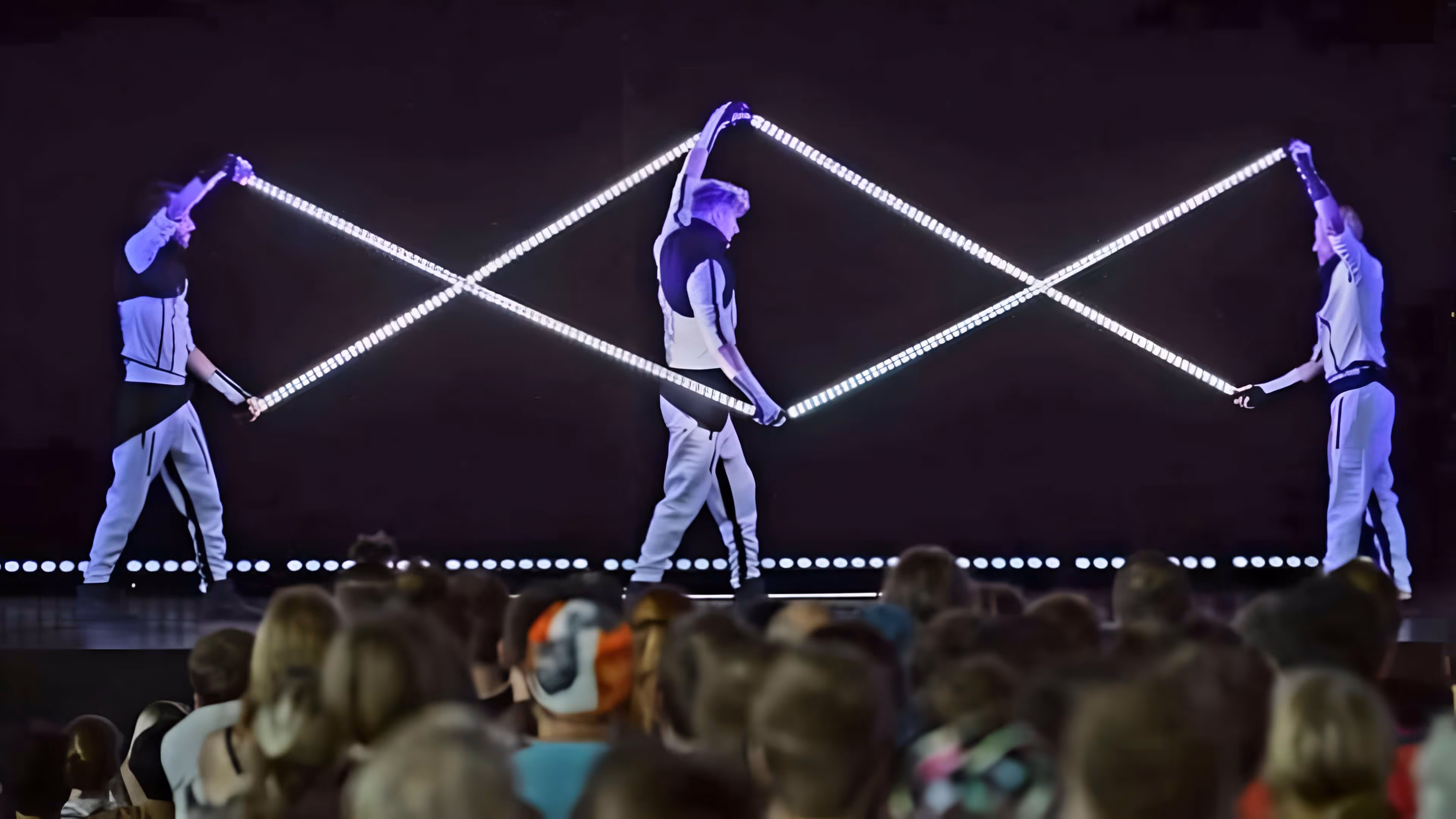 Jede Choreografie wird präzise mit LED-Requisiten und Lasertechnik einstudiert. Farben, Muster und kurze Claims werden individuell programmiert, auf Bühnenabstand und Blickwinkel kalibriert und exakt mit Musik-Cues synchronisiert – für klare Bilder, saubere Übergänge und maximale Wirkung.