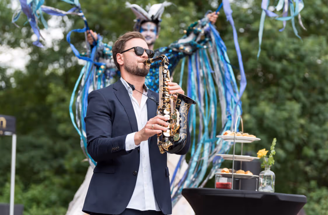 Saxofonist für Events: Live-Performance mit Stil, Energie und echter Publikumsmagie. Unsere Saxofonisten bringen Groove, Klasse und moderne Inszenierung auf Ihr Event.